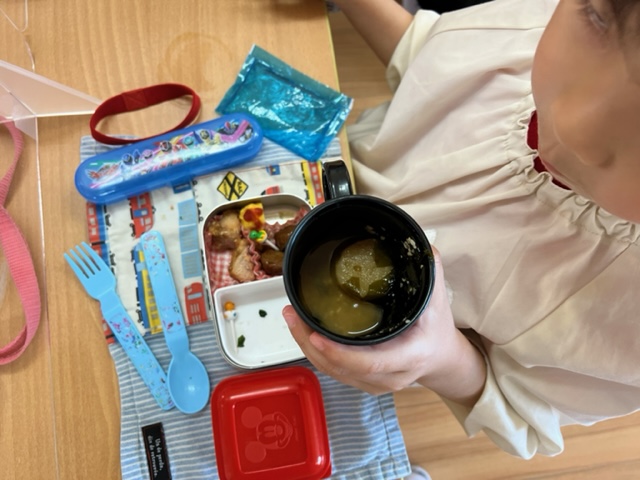 みんな嬉しそうでした^ ^ 年長組はお麩とワカメのお味噌汁。 完食でした!
