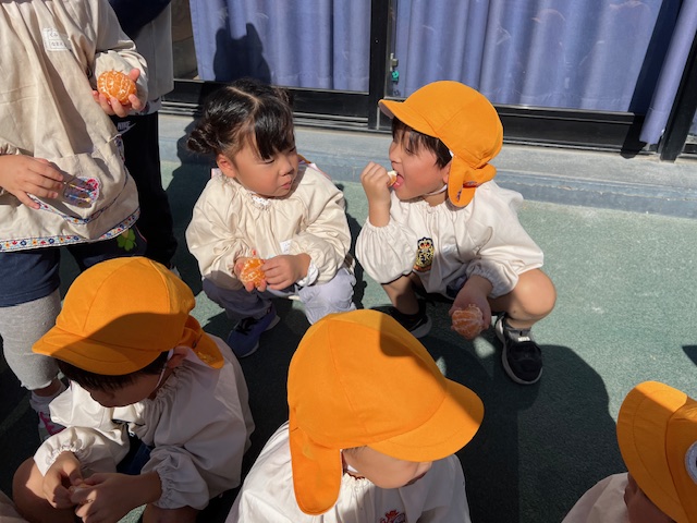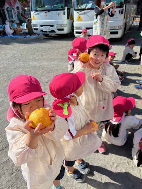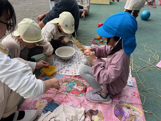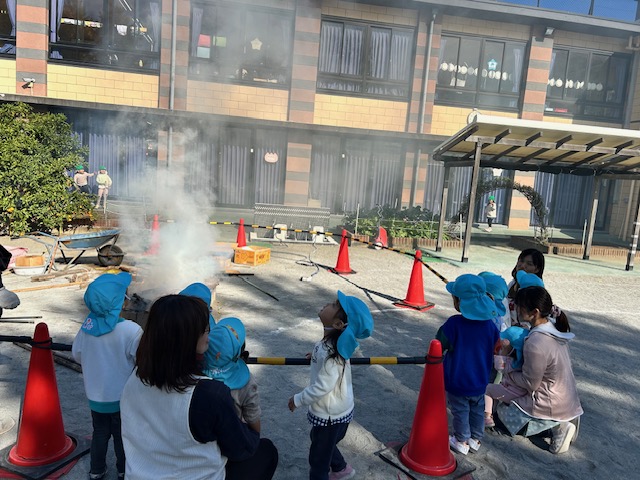 にじるーむさんは、在園児といっしょに園庭でやきいも体験をしました!