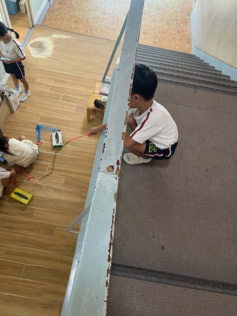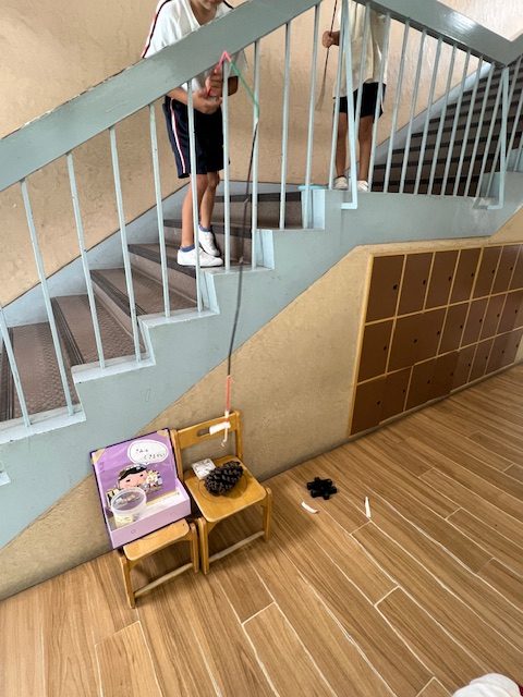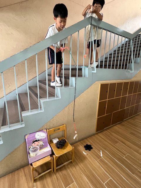 階段で遊んではいけない、何故なら危ないから。 しかし!深海魚を釣りたいと言う。 深い海が必要だよね。 見守る事にしました。