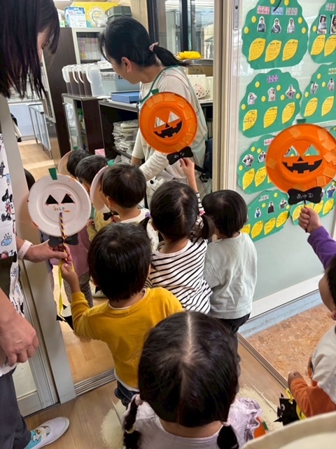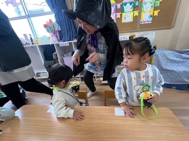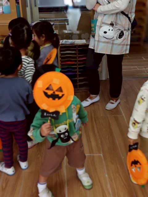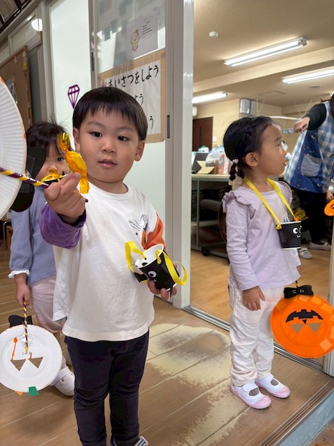 幼稚園の中をオバケに変身して歩いたり、魔法使いさんからキャンディをもらったりと楽しく過ごしました♪