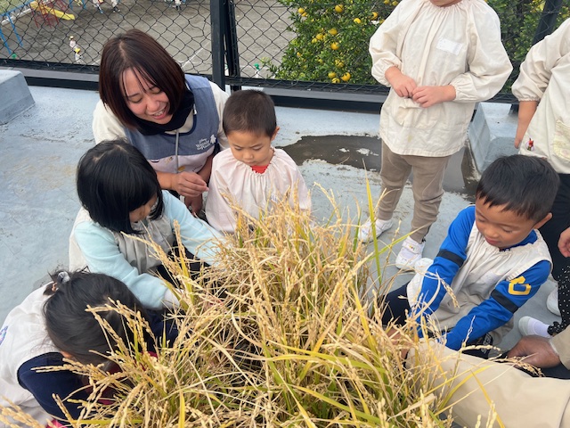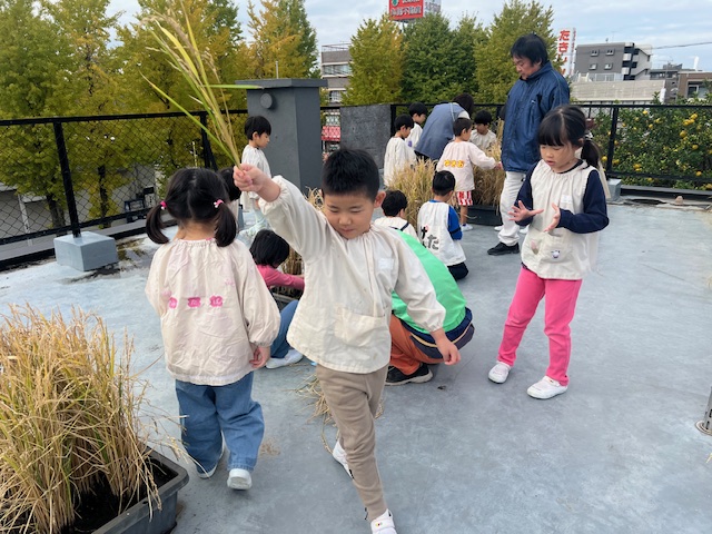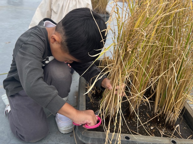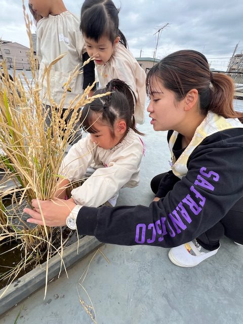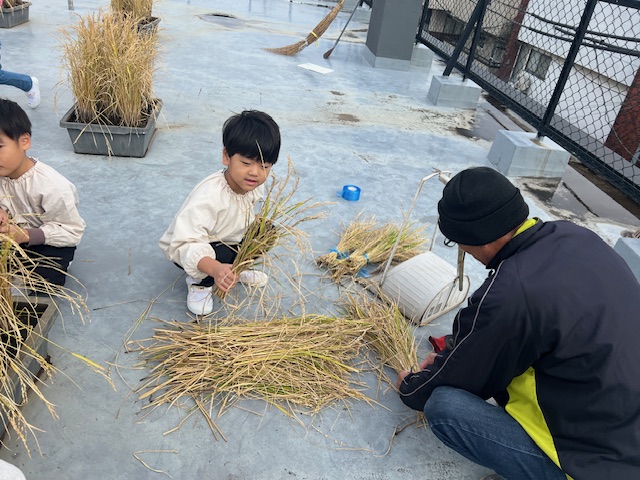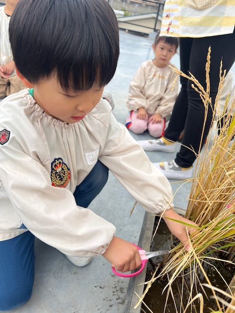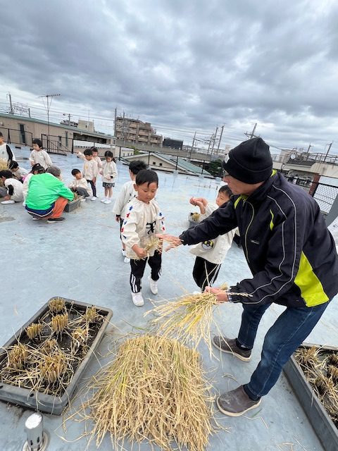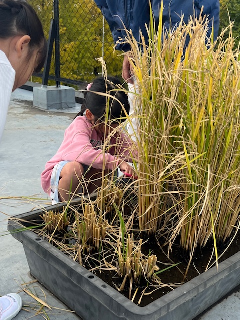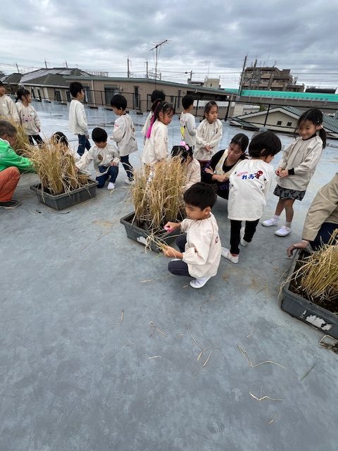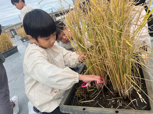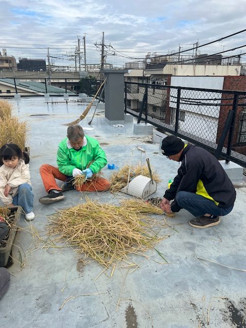 屋上で育てていた稲刈りをしました さぁ、ここから干してどれくらいのお米がとれるかな…