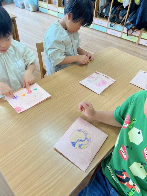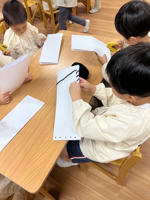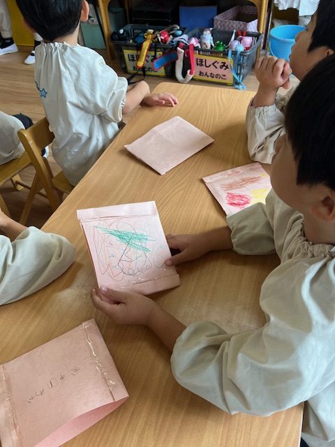千歳飴の大きさと白い画用紙だけ渡してあとは自分なりに…