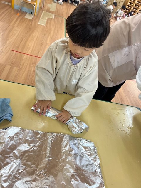 焼き上がりを待っている間にお芋を入れる袋を作ろう!