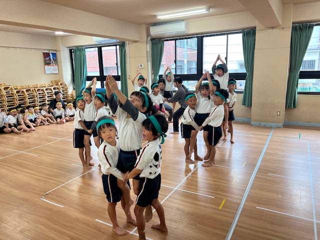 いよいよ運動会が明日になりました。 各学年、最後の練習をして気持ちが高まってきました。 特に年長組はえっさっさの練習の後、クラス対抗リレーを行い大接戦で盛り上がりました。