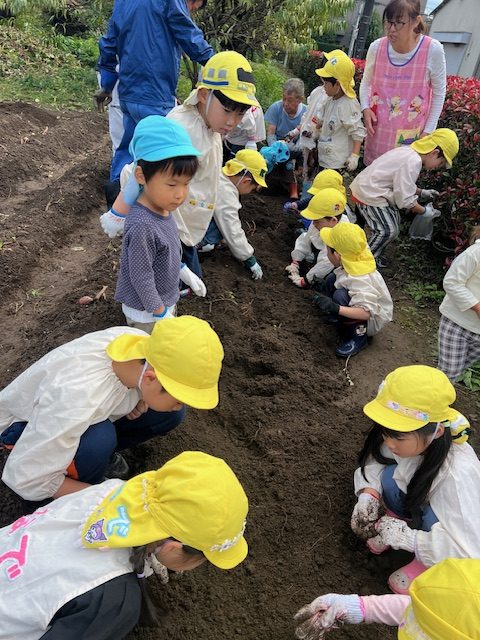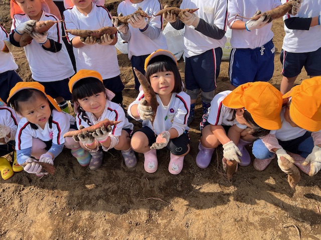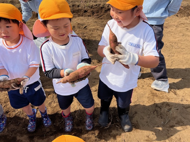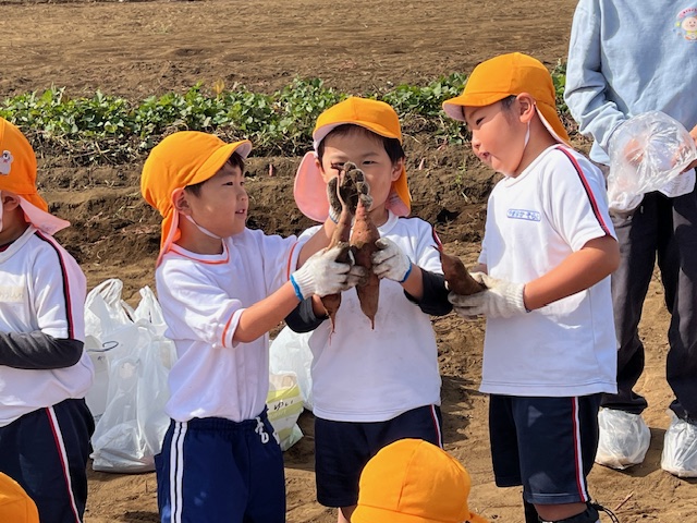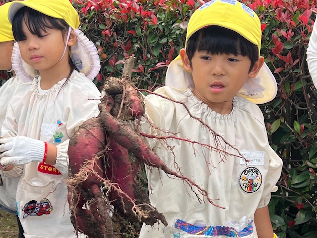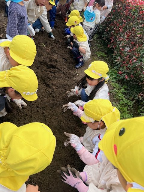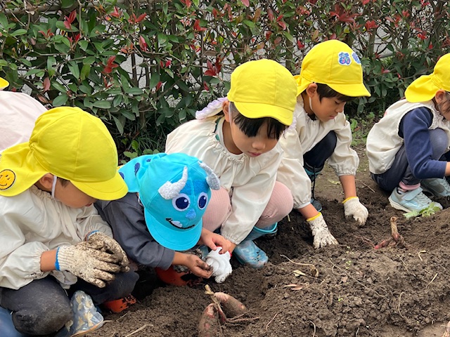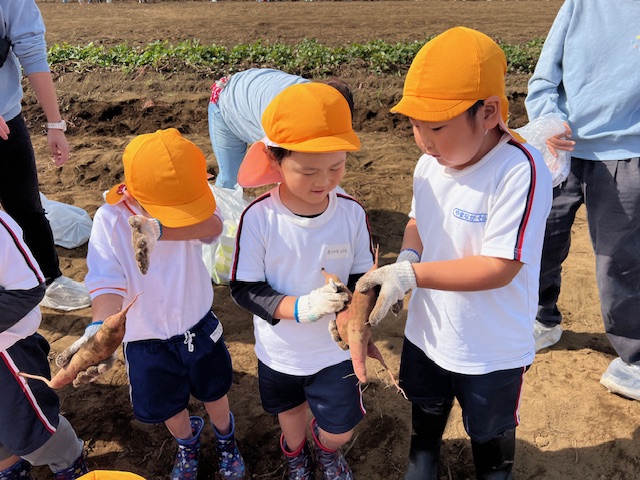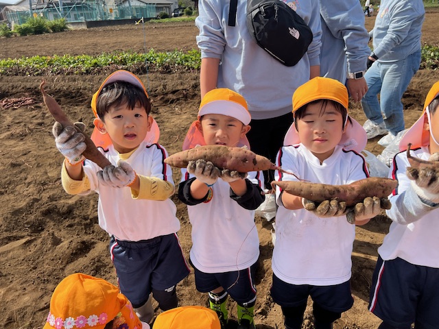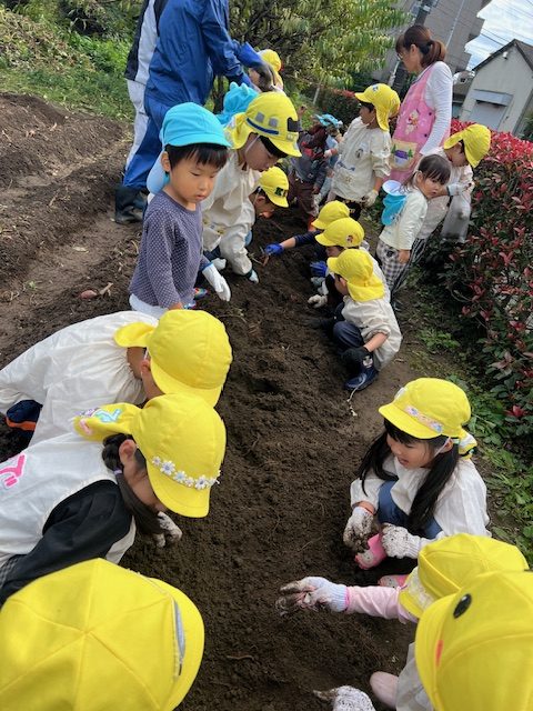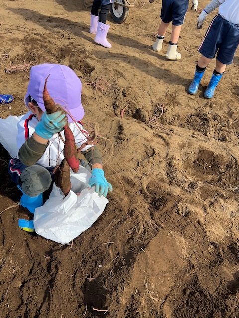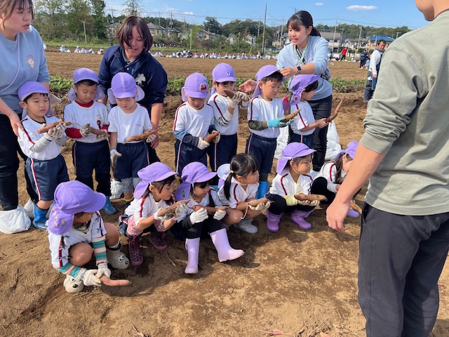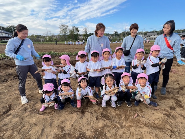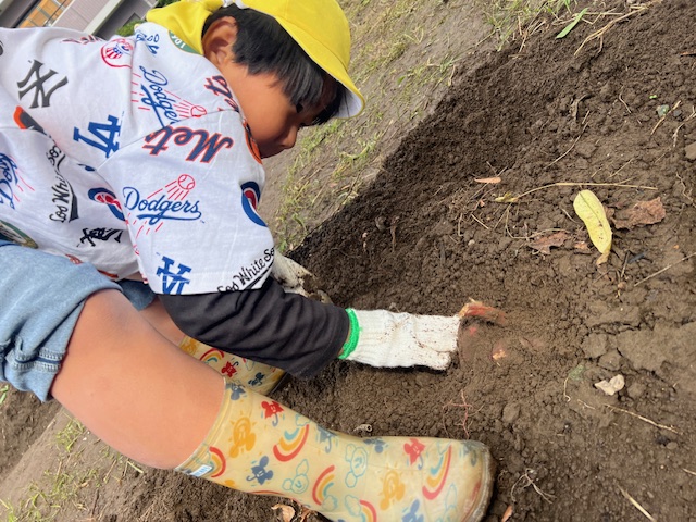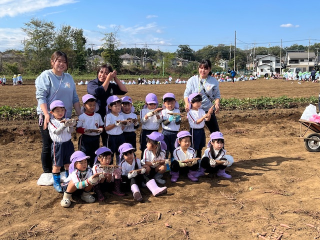 年中組さんは川越まで行ったけど年長組さんは2歳児るーむさんを連れて近くの畑でお芋掘り!